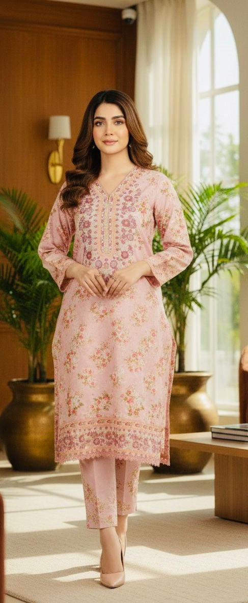 Description: Blooming Grace brings gentle floral patterns to soft kutraii khaddar, perfect for a cozy, stylish, and elegant winter look.