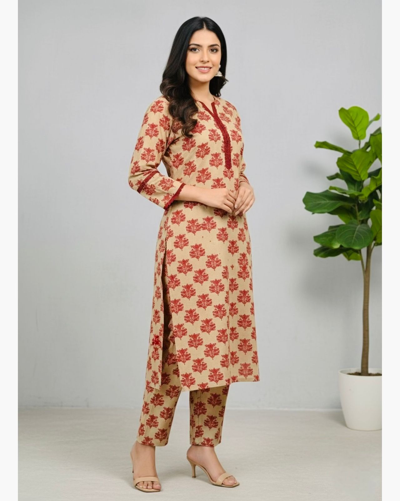 Color: Scarlet Red with Delicate Floral Detailing