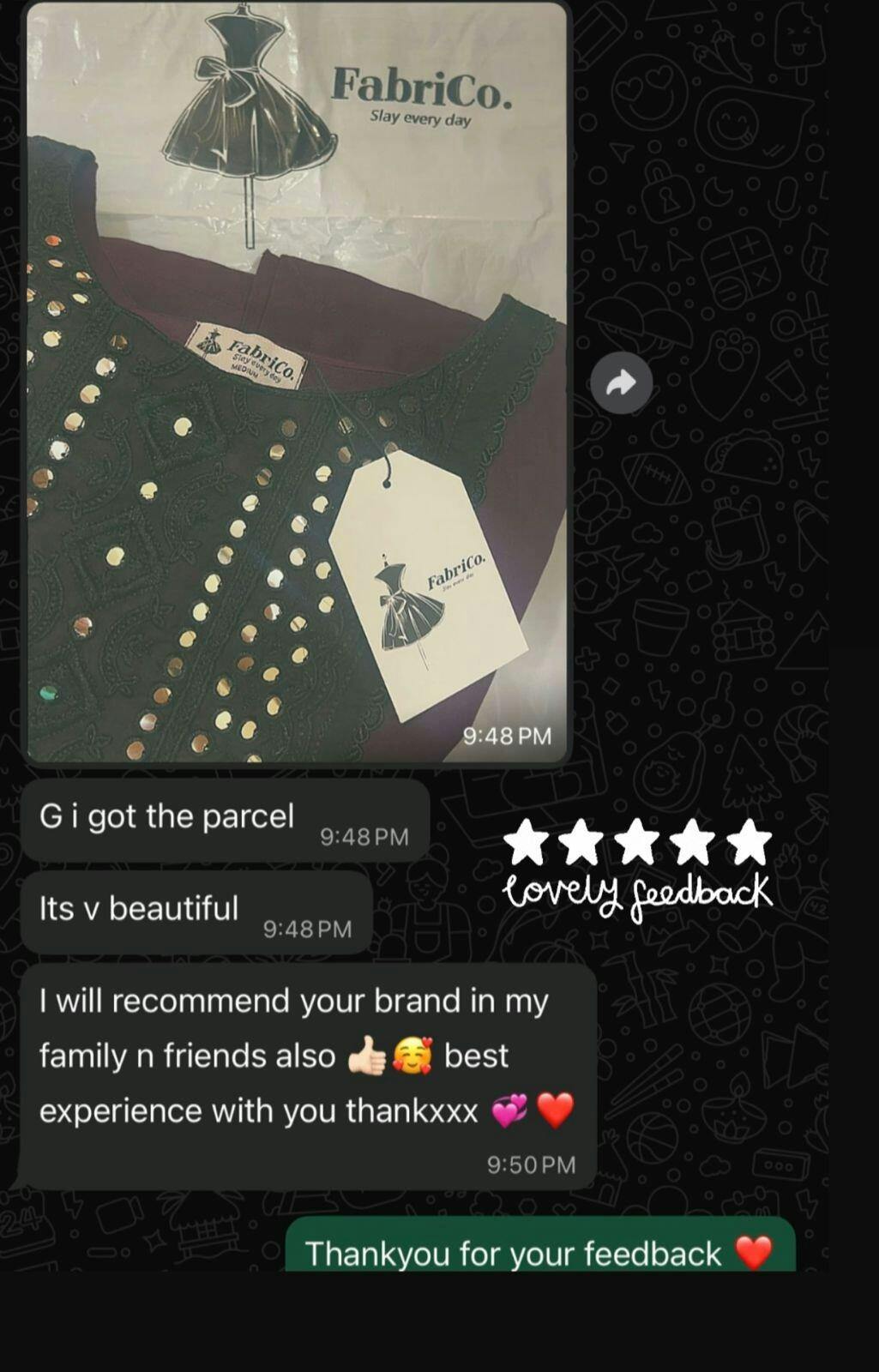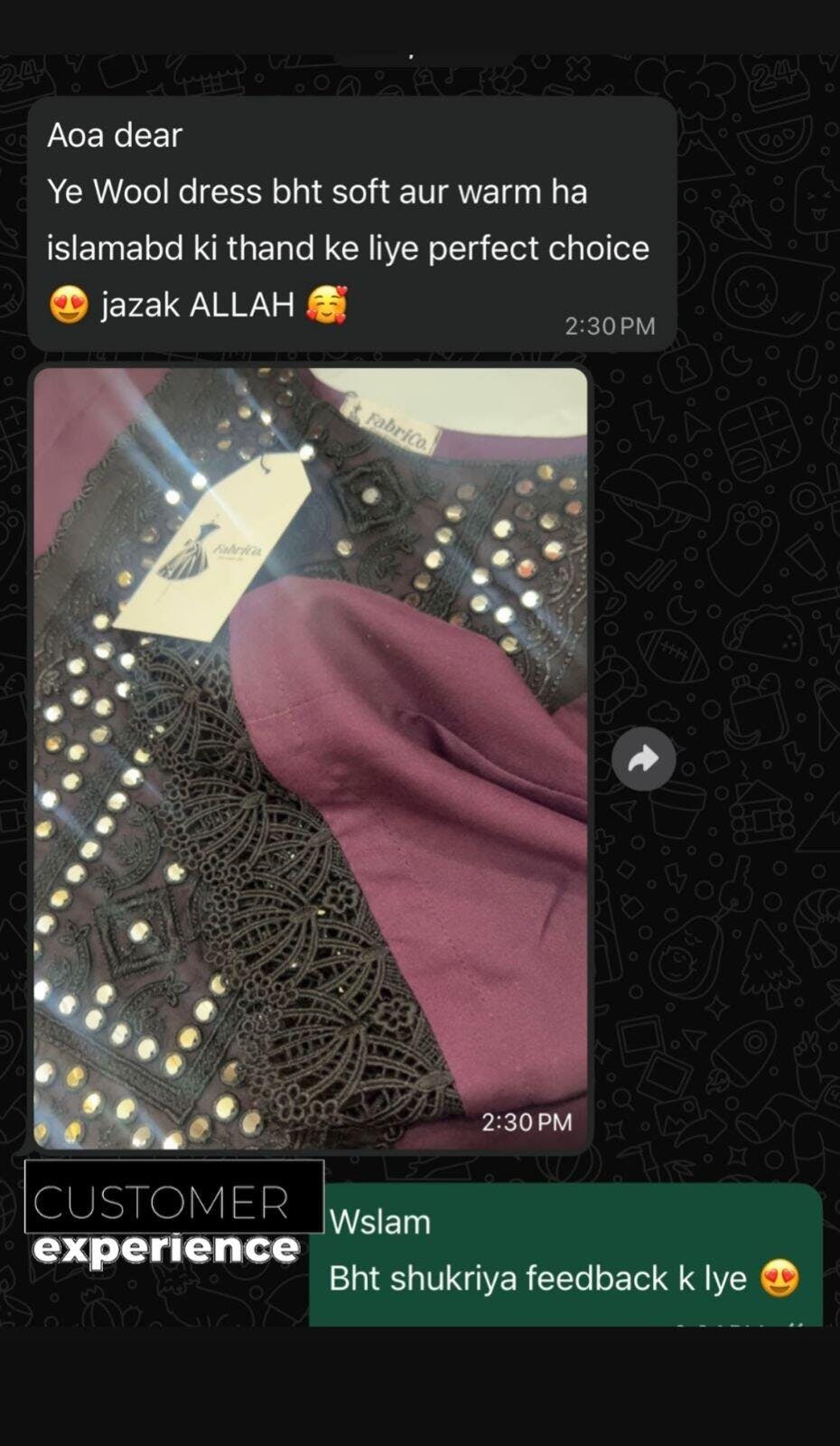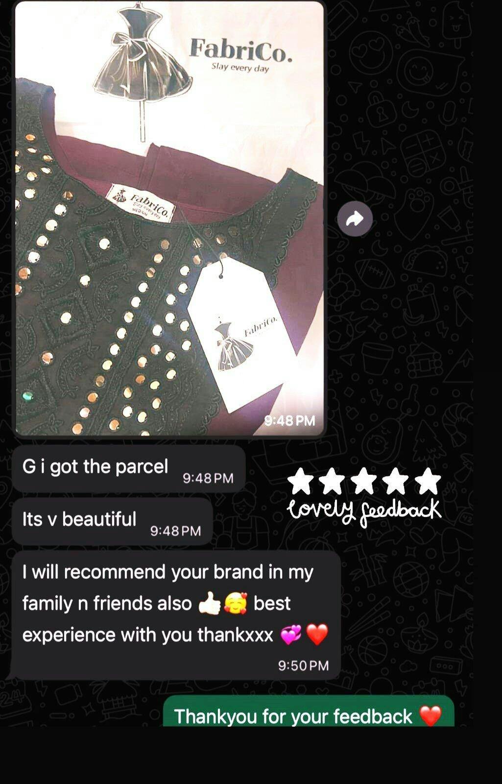 Mehreen Thankyou so much fabrico for this customized dress Its a very elegant dress .Everyone loves my dress jazakaALLAH